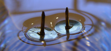 اگر ولتاژ بالا به یک مایع (مثلا آب دی یونیزه) درون دو بشر که با هم در تماس هستند، اعمال شود، ممکن است یک پل آبی تشکیل شود. این پدیده را بررسی کنید.(ولتاژ بالا بایستی فقط تحت نظارت مناسب استفاده شود - قوانین محل خود را بررسی کنید)