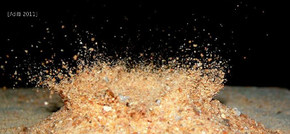 اگر یک گوی استیلی روی بستری از شن خشک سقوط کند، "پاشیدن" مشاهده خواهد شد که ممکن است همراه با جهش ستونی عمودی از شن باشد. این پدیده را بازتولید کرده و توضیح دهید.