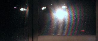 به سطح شیشه سردی بدمید تا بخار آب روی آن بنشیند. از شیشه مه آلود به یک لامپ سفید نگاه کنید، حلقه های رنگی را مشاهده خواهید کرد که دور هاله سفید ظاهر شده اند. این پدیده را بررسی کنید.
