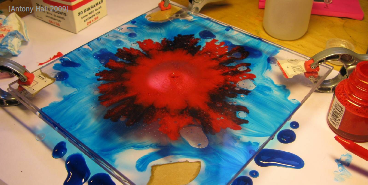 Fill a thin gap between two large transparent horizontal parallel plates with a liquid and make a little hole in the centre of one of the plates. Investigate the flow in such a cell, if a different liquid is injected through the hole.